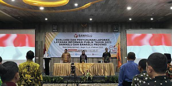 Bawaslu Provinsi Jawa Barat diwakili oleh Koordinator Divisi Humas dan Data Informasi, Harminus Koto didampingi Plt Kepala Bagian Hukum, Humas, dan Datin Andhika Pratama menghadiri kegiatan Evaluasi dan Penyusunan Laporan Layanan Informasi Publik Tahun 2022 Bawaslu Dan Bawaslu Provinsi 2-4 Februari 2023 di Kota Bogor.