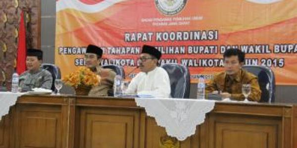 Bawaslu Provinsi Jawa Barat mengadakan Rapat Koordinasi Pengawasan Tahapan Pemilihan Bupati dan Wakil Bupati Serta Walikota dan Wakil Walikota Tahun 2015, bertempat di Gedung Korpri, Jl Turangga No. 25 Bandung (26/06).*