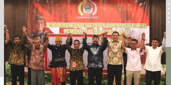 Anggota Bawaslu Provinsi Jawa Barat, Harminus Koto menghadiri Acara Pengukuhan dan Penyerahan Akreditasi Nasional Pemantau Pemilu 2024 bagi Komite Pencegahan Korupsi Jawa Barat.
