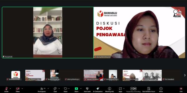 Kegiatan yang digelar secara daring pada Senin, 6 Oktober 2025, mengusung tema “Optimalisasi dan Inovasi Pencegahan di Masa Non Tahapan Pemilu” dengan menghadirkan dua narasumber, yaitu Akhmad Yasin Nugraha dari Bawaslu Kota Cimahi dan Lamlam Masropah, S.Kom.I., M.Sc dari Bawaslu Kabupaten Garut.