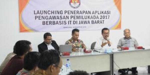 Bandung – Badan Pengawas Pemilu Provinsi jawa Barat telah melakukan Kegiatan “ Launching Penerapan Aplikasi Pengawasan Pilkada Tahun 2017 berbasis IT di Jawa Barat” pada Jum'at, 12 Agustus 2016 di Kantor Bawaslu Jabar, Jln.Turangga No.25 Kota Bandung.
