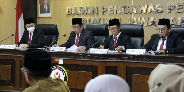 Bawaslu Provinsi Jawa Barat bacakan tiga putusan terjadinya kesepakatan penyelesaian sengketa proses pemilu dari pemohon atas nama 1) Apan Abdul Goni, 2) Ambu Usdek Kaniawanti, 3) Muhammad Murtadloillah, Jum’at (10/2).
