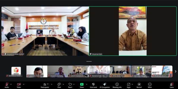 Bandung (24/9) - Rapat Evaluasi E-Monev Pengelolaan Keterbukaan Informasi Bawaslu Kabupaten Kota se- Jawa Barat merupakan forum evaluasi kinerja, sejumlah catatan penting disampaikan kepada jajaran Bawaslu Kabupaten/Kota untuk memperkuat peran lembaga. Acara diselenggarakan secara daring, pada 24 September 2025 dimulai jam 10.00 WIB sampai 12.00 WIB dengan narasumber Asisten Ahli Komisi Informasi Provinsi Jawa Barat Novia Deviyanti, M.Pd., C.Med.