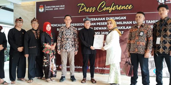 KPU Provinsi Jawa Barat menyampaikan Tanda Terima Penyerahan Dukungan kepada bakal calon anggota DPD Dra.Ir.Hj. Eni Sumarni.