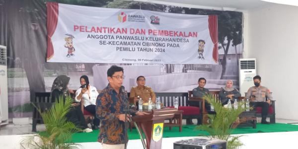 SahabatBawaslu, Ketua Bawaslu Jabar Abdullah berikan arahan pada Pelantikan dan Pembekalan Panwaslu Kelurahan/Desa di Kecamatan Cibinong, Kabupaten Bogor (6/2).