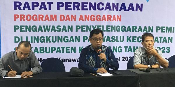 Kabupaten Karawang (25/5), Ketua Bawaslu Jabar Abdullah menjadi narasumber dalam Kegiatan Rapat Perencanaan Program dan Anggaran Pengawasan Penyelenggaraan Pemilu di Lingkungan Panwascam se-Kabupaten Karawang yang digelar Bawaslu Kabupaten Karawang (25-26/5)