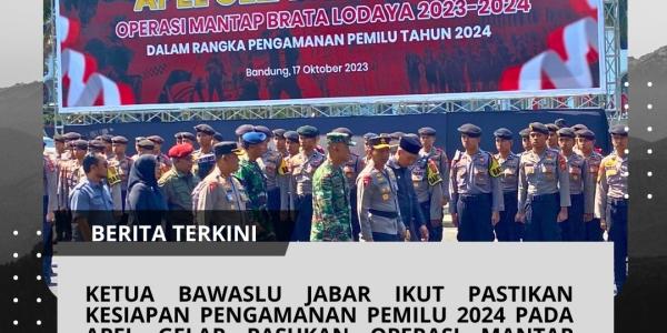 Bandung, Badan Pengawas Pemilihan umum,17 Oktober 2023 - Hari ini, Ketua Badan Pengawas Pemilu (Bawaslu) Jawa Barat, bersama dengan sejumlah pejabat tinggi, turut memastikan kesiapan pengamanan Pemilu 2024 dalam rangka Apel Gelar Pasukan Operasi Mantap Brata Lodaya 2023-2024. Acara bersejarah ini berlangsung di depan Gedung Sate, Jalan Diponegoro, Kota Bandung, dan melibatkan sebanyak 19.475 personel gabungan yang akan bertugas mengawal pelaksanaan Pemilu 2024 di Jawa Barat.