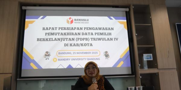 Bandung — Bawaslu Jawa Barat menegaskan pentingnya mitigasi kerawanan data Pemutakhiran Data Pemilih Berkelanjutan (DPB) menjelang pleno triwulan IV kabupaten/kota yang dijadwalkan pada 8–9 Desember 2025. Pesan tersebut disampaikan dalam rapat persiapan pengawasan DPB yang diselenggarakan di Mandiri University, Selasa (25/11/2025).