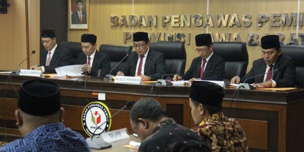 Bandung, Bawaslu Provinsi Jawa Barat - Bawaslu Jabar Bacakan tiga putusan Penyelesaian Dugaan Pelanggaran Administratif Pemilu. KPU Kabupaten Bandung dan KPU Kabupaten Purwakarta terbukti melakukan pelanggaran (23/6)