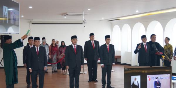 Prosesi dimulai dari pembacaan SK pemberhentian Anggota Bawaslu Jabar 2018-2023, dilanjutkan dengan pembacaan SK pengangkatan, pengucapan Sumpah/janji, pembacaan Fakta integritas dan penandatanganan Berita Acara serta arahan dari Ketua Bawaslu RI,dan diakhiri dengan ucapan selamat.