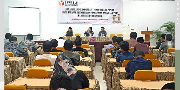 Purwakarta (9/5) Yulianto Anggota Bawaslu Provinsi Jawa Barat berikan arahan pada kegiatan Penanganan Pelanggaran Tindak Pidana Pemilu pada Tahapan Pendaftaran Pencalonan Anggota DPRD Kab. Purwakarta.